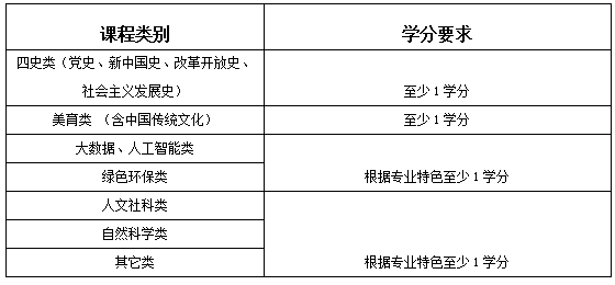 (7)根据2022年专升本专业人才培养方案的指导意见,2022级及以后年级的专升本生在校期间通识教育选修课需至少修满4学分方能满足毕业要求,且学分分配有课程类别要求,具体要求如下表,请2022级及以后年级的专升本生在校期间选修通识教育选修课时按照课程类别合理选课。