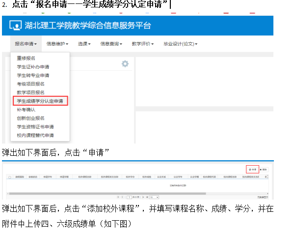 (2)学生在校期间大学英语课程未取得相应学分,且不符合免修条件者,可以申请成绩认定(面向预毕业生);