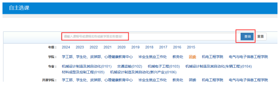 第三步:直接点击方框后“查询”按钮,所显示出来的即是可选课的全部列表(如下图)。