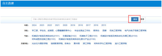 第四步:点开要选的课程名称后,根据目前大学英语的上课时间点击右边出现“选课”按钮(如下图)